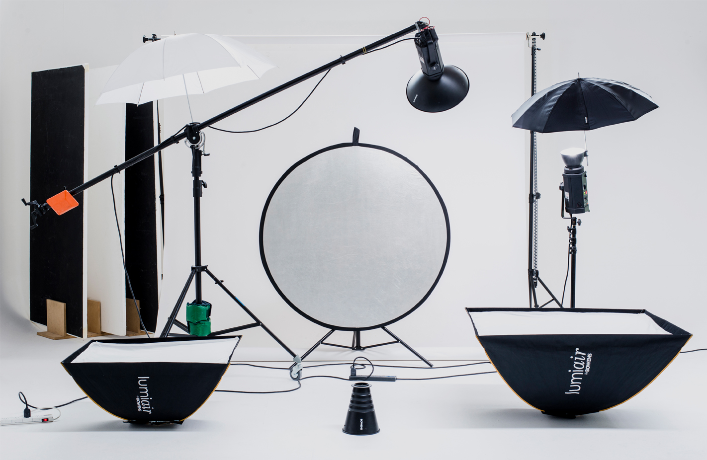 - Manfrotto Jirafa 025BS Super Boom con 2 manivelas para controlar la movilidad de los flashes.
